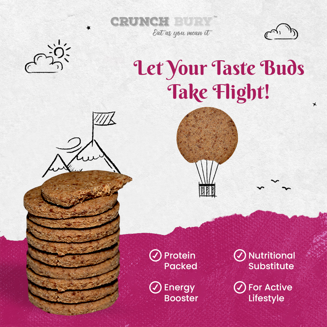Are you craving something crunchy? Look no further! Crunchbury’s Atta & Millet Cookie delivers an explosion of flavour with a perfectly crunchy texture. Each cookie is crafted using sprouted millet flour and the goodness of jaggery. These luxurious sprouted cookies have buttery and crispy edges with a soft centre; making them a perfect healthy munching snack for busy mornings.