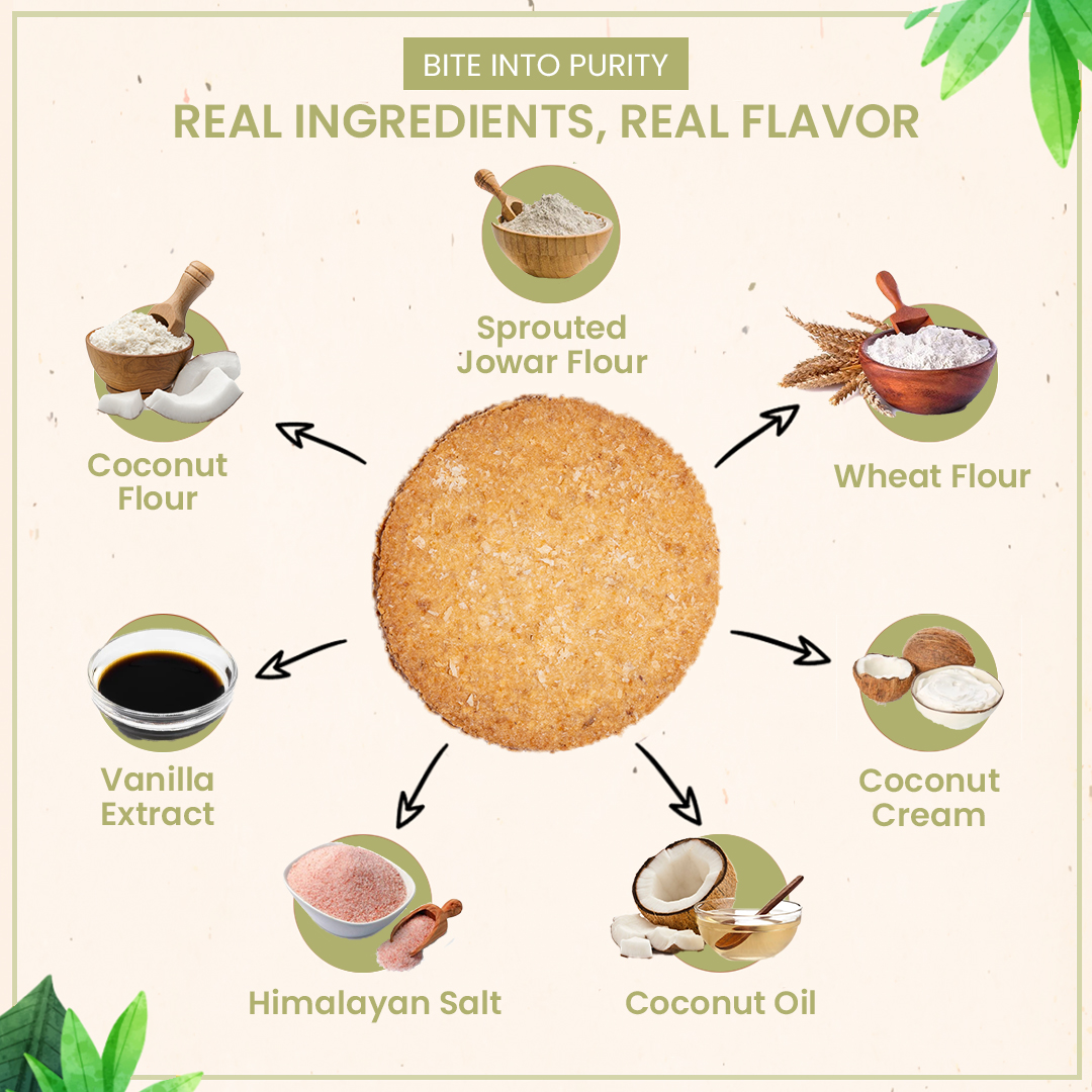 Coconut and Millet cookies are made from Amaranth Flour, Sprouted Sorghum Flour, Buckwheat Flour, and Coconut Powder and sweetened by natural sweetener, jaggery. Needless to say, it is also gluten-free and refined sugar-free. All of this makes it a healthier choice.