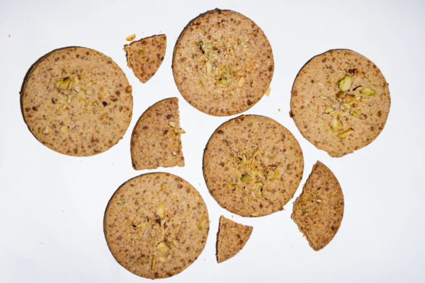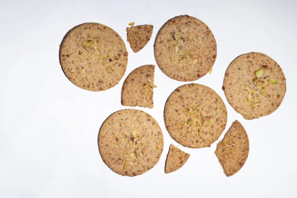 Crafted with love, these millet cookies have a crispy and crumbly texture. They are super flavourful, with a perfect balance of crunchiness and creaminess. Cashews and Pistachios offer a unique nutty twist – the one that tempts the senses. Pair them with a cup of tea or enjoy them as a healthy late-night snack, Cashew and Pistachio cookies will leave you craving for more!