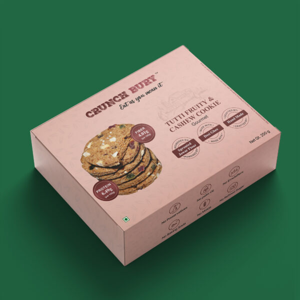 Are you tired of reading unhealthy ingredients on cookie labels every time you go grocery shopping? No worries. Explore Crunchbury’s wide range of cookies that offer health and taste in every bite. Our Tutti Fruity and Cashew cookie is carefully crafted using high-quality ingredients to satisfy every palate. Enriched with cashew nuts and tutti fruity, these millet cookies are irresistible!