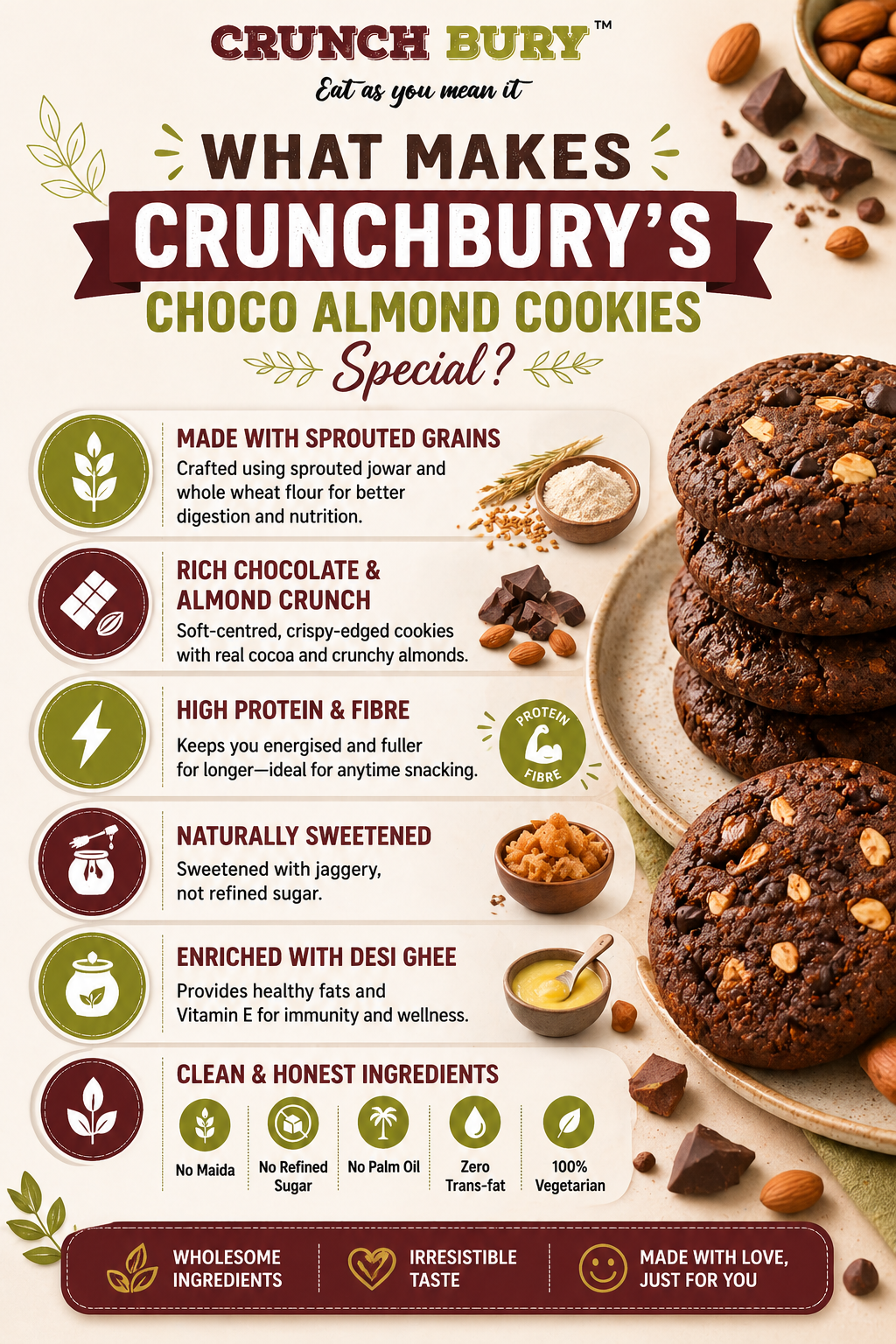 Chocolate and Almond Cookies and explore Crunchbury’s range of healthy and nutritious snacks.
