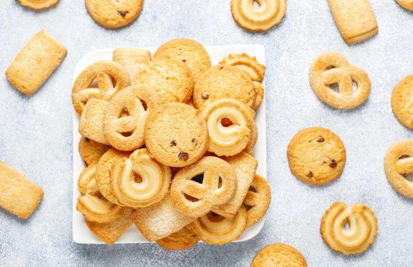 Buttery taste, sturdy texture, rich flavor, and delicate crumb-Butter Cookies first originated in Denmark. They are also called Danish Butter Cookies. Made using flour, butter, and sugar; these cookies are a pure delight! You can enjoy these with a cup of tea or as an office snack.